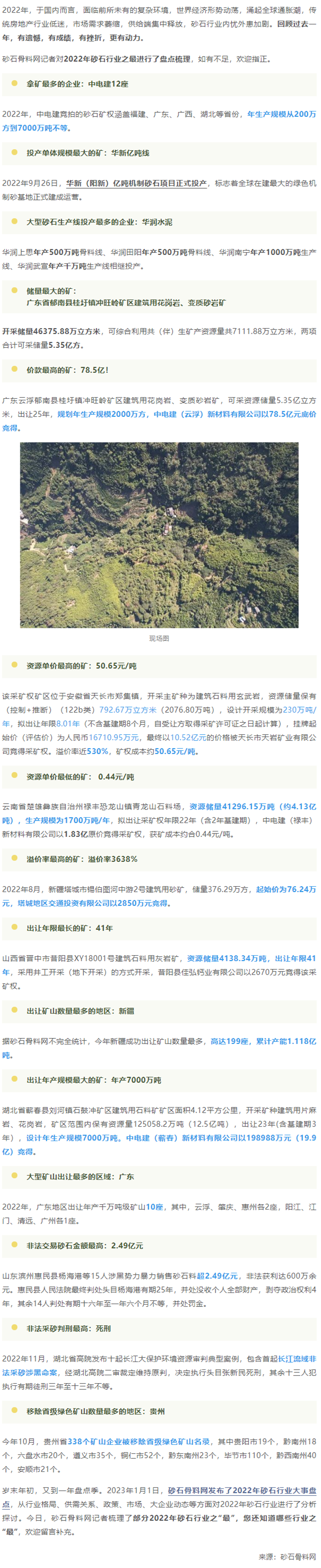 盘点 | 细数2022年砂石行业之最