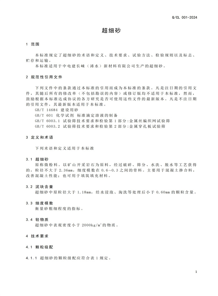 《超细砂企业标准》