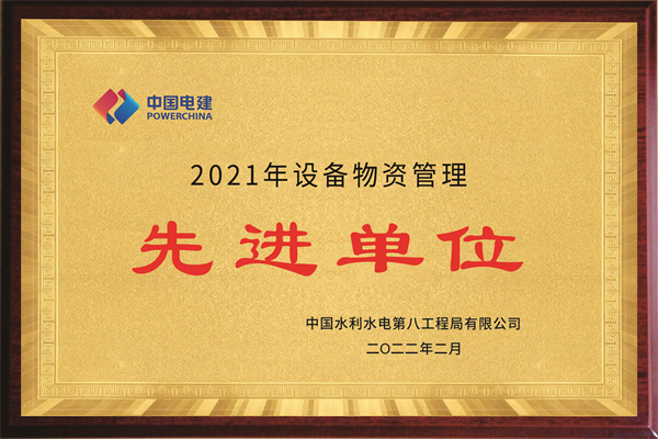 水电八局2021年度设备物资管理先进单位